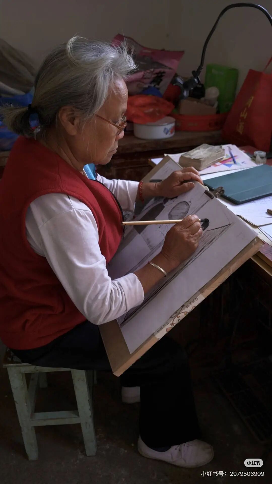 “肖大妹”在画画(来自“我是肖大妹”小红书)